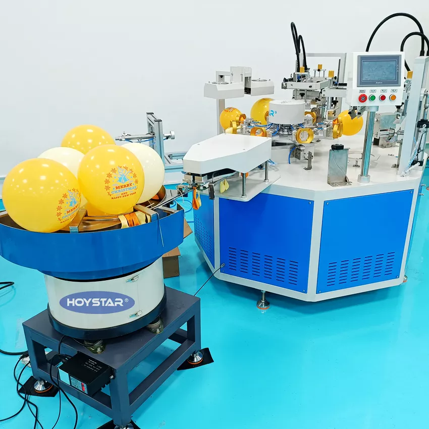 HOYSTAR je zanesljiv proizvajalec in dobavitelj na Kitajskem; Ta sitotiskarski stroj za 2 barvne balone HOYSTAR s samodejnim podajalnikom je zasnovan za tiskanje na balone iz lateksa. Opremljen z vrtljivo delovno mizo, samodejnim nalaganjem, samodejnim pihanjem, samodejnim vrtenjem, samodejnim sušenjem, samodejnim razkladanjem. Nadzor PLC z zaslonom na dotik, uporabniku prijazen vmesnik za varno in intuitivno upravljanje. Stroj združuje hitrost, natančnost in enostavnost uporabe.