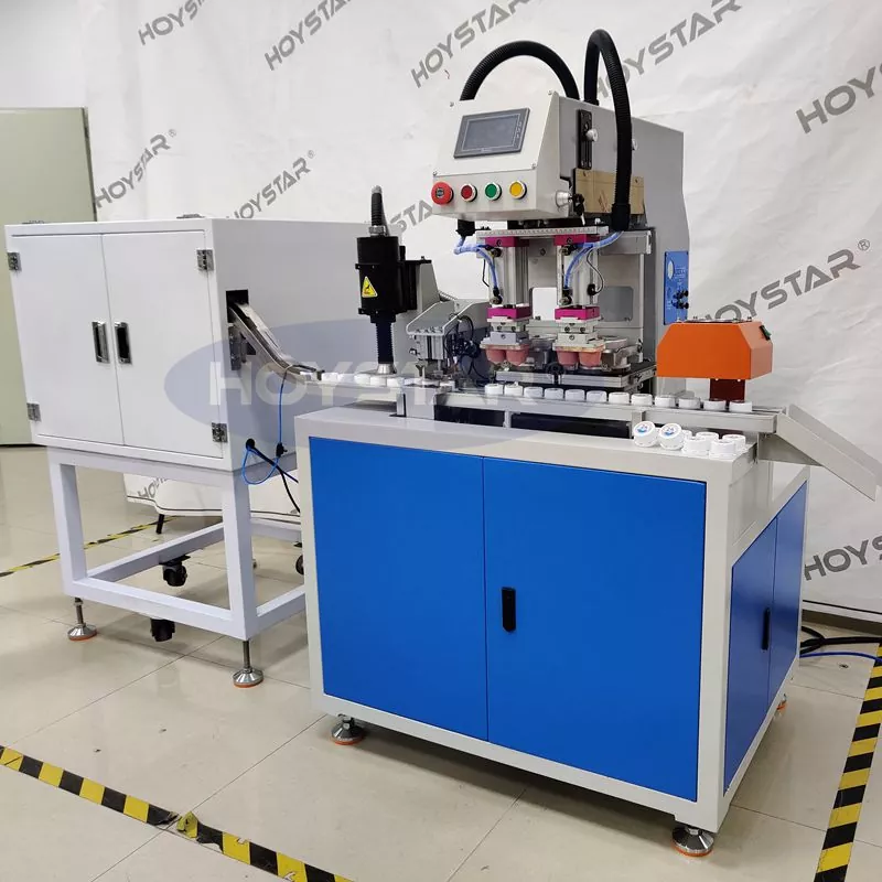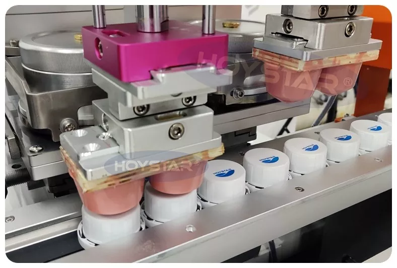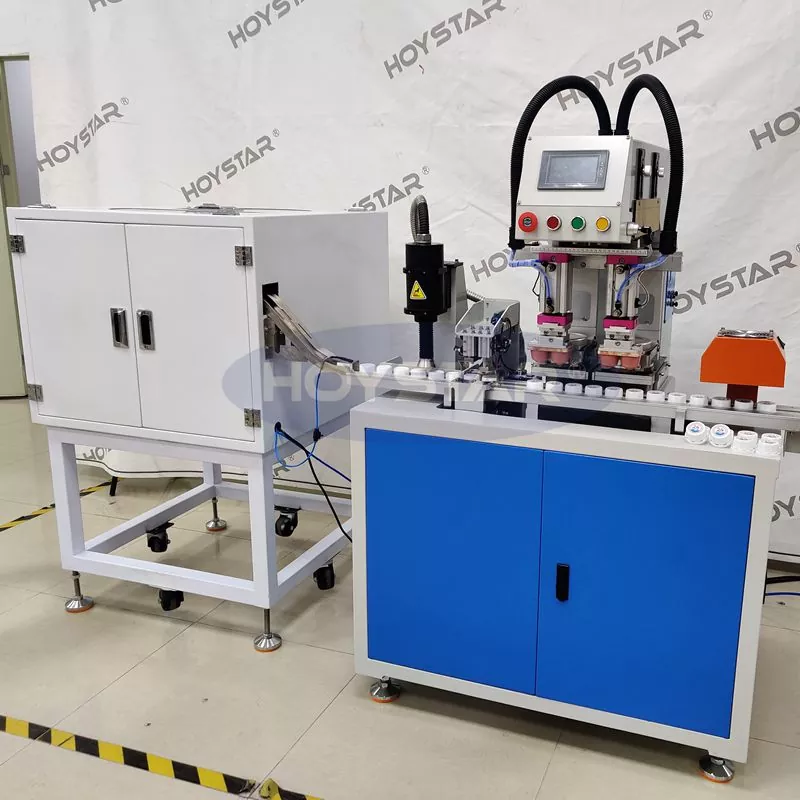 Kot profesionalni proizvajalec je tamponski tiskalnik HOYSTAR 2 Colours Bottle Caps s plazma obdelavo visoko zmogljiva in praktična oprema za tiskanje, posebej zasnovana za tiskanje na pokrovčke steklenic. Stroj ima popolnoma avtomatsko zasnovo, opremljen s samodejnim podajanjem, samodejno obdelavo s plazmo, samodejnim tiskanjem, samodejnim sušenjem in samodejnim razkladanjem za doseganje stabilne proizvodnje in prihranek delovne sile. Primeren je za potrebe tiskanja pokrovčkov steklenic v industrijah, kot so pijače, kozmetika, dnevne kemikalije in drugo. Lahko izpolni posebne tiskarske zahteve strank za izdelke s pokrovčki steklenic.