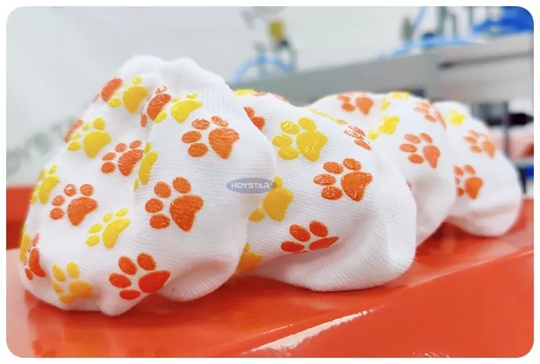 Naš sitotiskarski stroj za dvobarvne nedrseče nogavice je zasnovan za visokokakovostne nedrseče nogavice, kot so otroške nogavice, nogavice za hišne ljubljenčke, nogavice za odrasle, nogometne nogavice, oprijemalne nogavice. Primerno za proizvajalce, specializirane za atletske, medicinske, otroške in joga nogavice za nakup za tiskanje