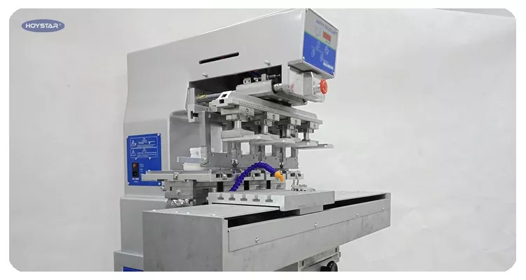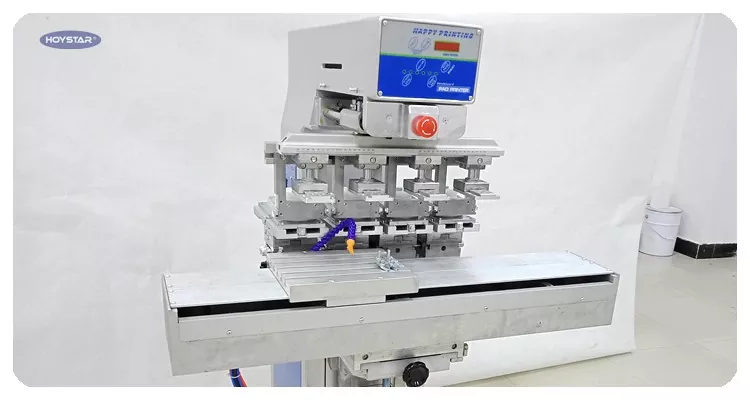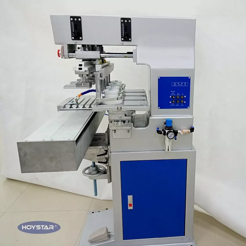 Kot profesionalni proizvajalec na Kitajskem vam želimo ponuditi visoko učinkovit 4-barvni tamponski tiskalnik HOYSTAR z delovno mizo Shuttle za pokrov. Naši stroji uporabljajo krmiljenje PLC in zaslona na dotik ter so primerni za tiskanje različnih izdelkov. Stroj odlikuje konkurenčna cena, majhen odtis in stabilna kakovost tiskanja.