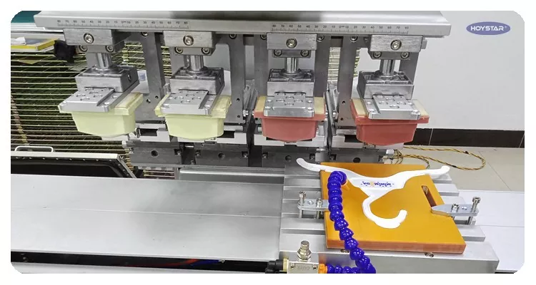 Ta 4-barvni tamponski tiskalnik HOYSTAR z delovno mizo Shuttle za pokrov je visokozmogljiva in stroškovno učinkovita oprema za tiskanje. Stroj ponuja priročno nastavitev, stabilno delovanje in dober učinek tiskanja. Stroj zagotavlja enakomerno kakovost tiskanja in je primeren za tiskanje najrazličnejših predmetov, kot so elektronski izdelki, plastične lupine, izdelki strojne opreme, pisalne potrebščine, manjša umetnost in obrt, kot tudi majhni logotipi na površini daril in še več. Lahko izpolni različne zahteve stranke glede tiskanja.