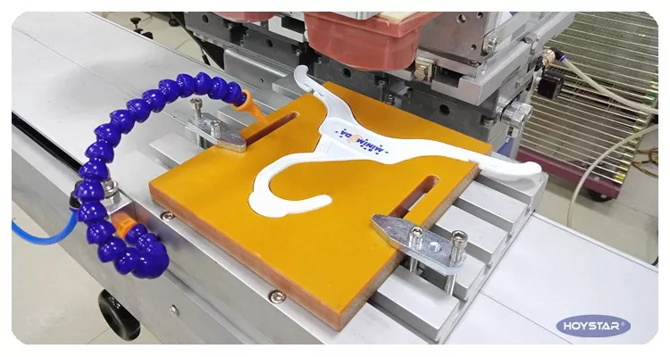 Delovno mizo stroja je mogoče namestiti in zamenjati z različnimi pritrdilnimi elementi za tiskanje izdelkov različnih vrst in velikosti
