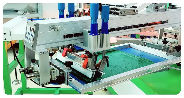 4-barvni sitotiskarski stroj s tiskanjem tekstila na majice s PLC-jem in zaslonom na dotik, upravljanje je intuitivno – tudi za nove uporabnike. Vmesnik omogoča enostavno prilagajanje hitrosti tiskanja, načina tiskanja itd.