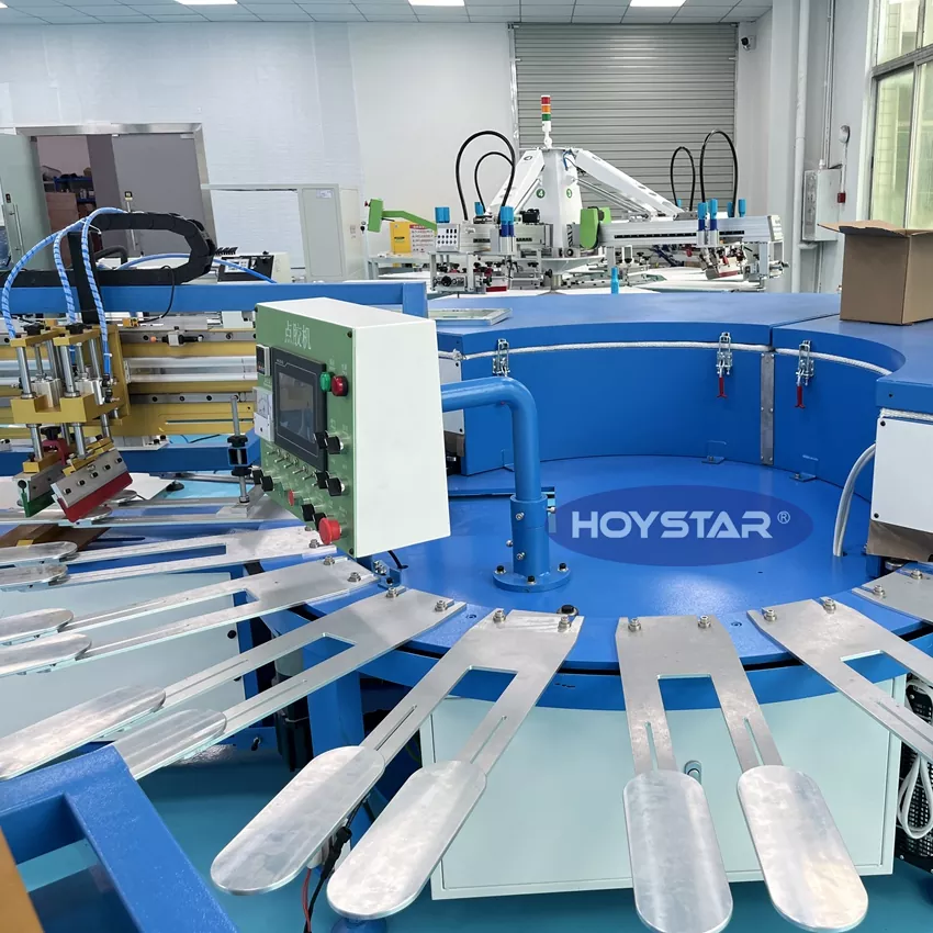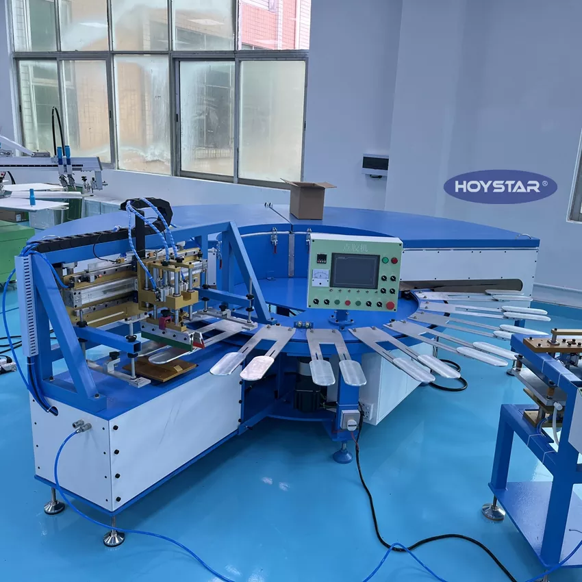Kot profesionalni proizvajalec na Kitajskem bi vam radi ponudili visoko hiter sitotiskarski stroj proti zdrsu nogavic HOYSTAR. Naši stroji uporabljajo krmiljenje PLC in zaslona na dotik ter se uporabljajo predvsem za tiskanje različnih vrst nogavic. Stroj je opremljen s sušilno pečico, ki lahko dobro posuši silicij in črnilo.