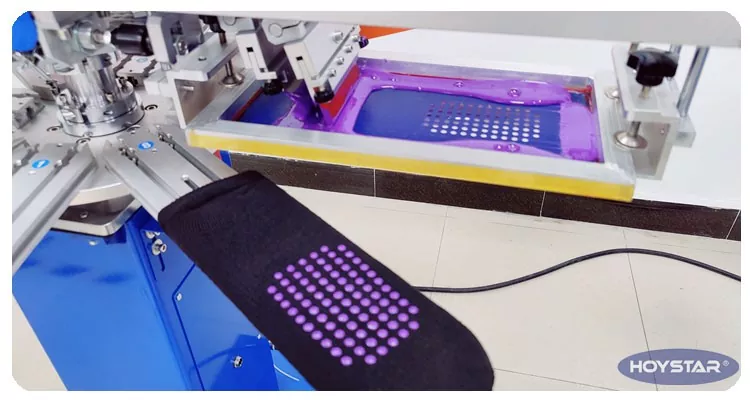 Kot profesionalni proizvajalec in dobavitelj je HOYSTAR High Rapid Anti Slip Socks Screen Printing Machine zasnovan za uporabo v industriji tekstilnega pletenja. S hitrostjo do 1000 kosov/uro je primeren za tiskanje nedrsečih nogavic, nogavic za dojenčke, nogavic za odrasle, nogometnih nogavic itd. Opremljen je z vrtljivo delovno mizo, zato je zelo priročen za nalaganje in praznjenje nogavic. PLC nadzor zaslona na dotik, zelo enostaven za uporabo. Stroj, opremljen s sušilnim sistemom, lahko dobro posuši silicij in črnilo.