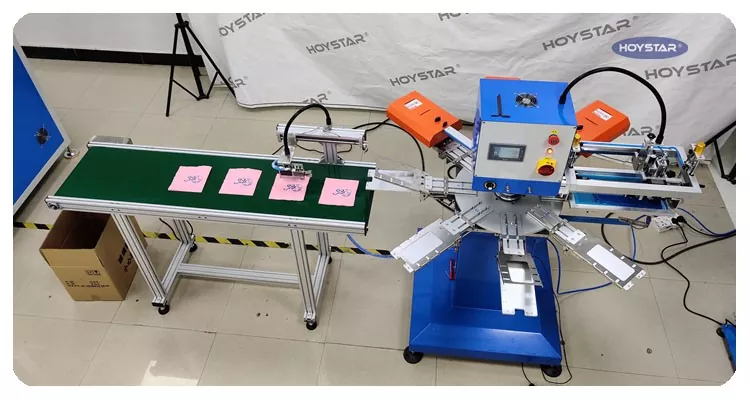 Kot profesionalni proizvajalec in dobavitelj, HOYSTAR avtomatski 1-barvni sitotiskarski stroj za prtičke. je posebej zasnovan za popolnoma avtomatsko tiskanje na prtičke. Njegov poenostavljeni postopek tiskanja se odvija na naslednji način: ročno nalaganje prtičkov na stroj—samodejno tiskanje prve barve—samodejno sušenje—samodejno praznjenje—in samodejno zbiranje izdelkov.