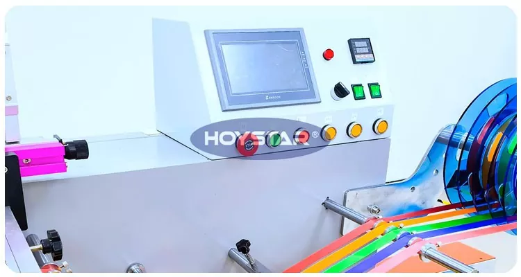 Ta HOYSTAR dobavlja sitotiskarski stroj Roll To Roll. Stroj opremljen s fotoelektrično registracijo, krmiljenjem PLC zaslona na dotik, prilagodljivimi nastavitvami, primeren za tiskanje na različne filme, trakove itd.