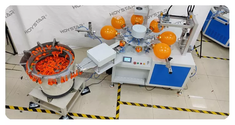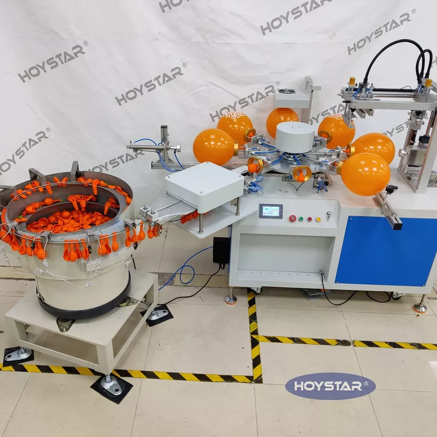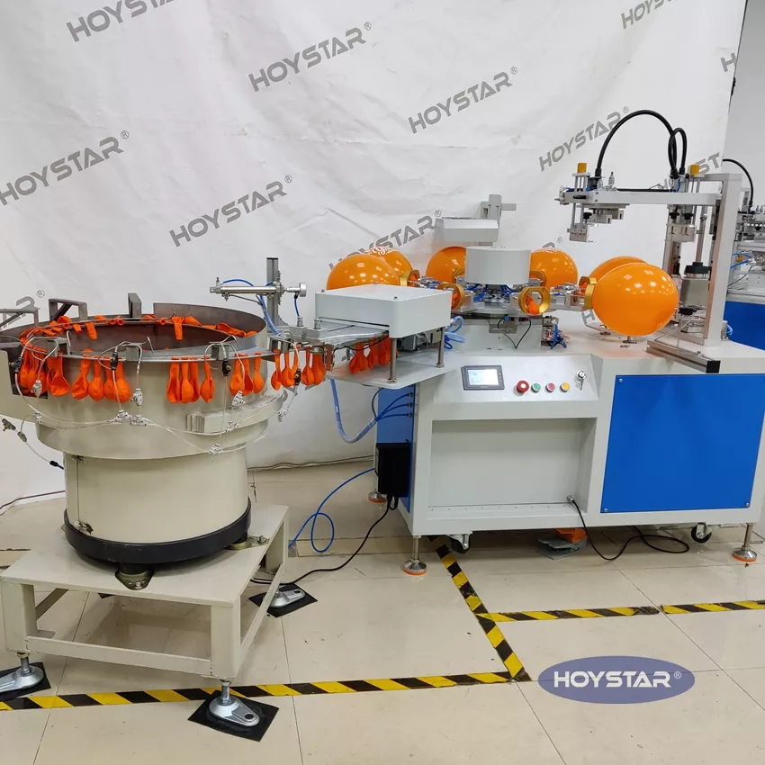 Kot profesionalni proizvajalec in dobavitelj, HOYSTAR popolnoma avtomatski stroj za sitotisk z 1 barvnimi baloni. je namenjen tisku na balone iz lateksa. Opremljen z vrtljivo delovno mizo, samodejnim nalaganjem, samodejnim pihanjem, samodejnim vrtenjem, samodejnim sušenjem, samodejnim razkladanjem. Nadzor PLC z zaslonom na dotik, uporabniku prijazen vmesnik za varno in intuitivno upravljanje. Stroj združuje hitrost, natančnost in enostavnost uporabe.