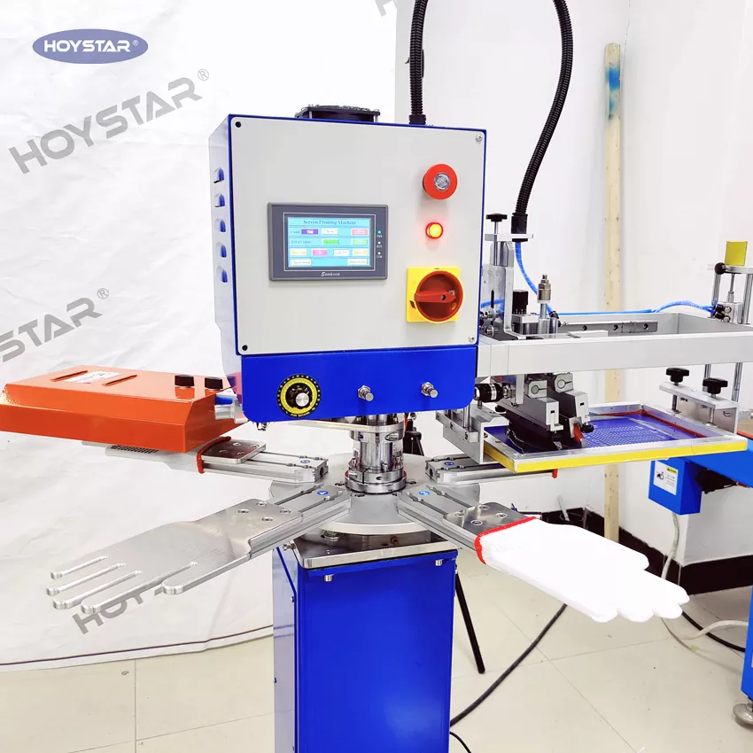 Kot profesionalni proizvajalec in dobavitelj je HOYSTAR High Rapid Non Slip Gloves Screen Printing Machine zasnovan za uporabo v industriji tekstilnega pletenja. S hitrostjo do 1000 kosov/uro je primeren za tiskanje delovnih rokavic, bombažnih rokavic, pletenih rokavic itd. Opremljen z vrtljivo delovno mizo, je zelo priročen za nalaganje in razkladanje rokavic. PLC nadzor zaslona na dotik, zelo enostaven za uporabo. Stroj, opremljen s sušilnim sistemom, lahko dobro posuši silicij in črnilo.